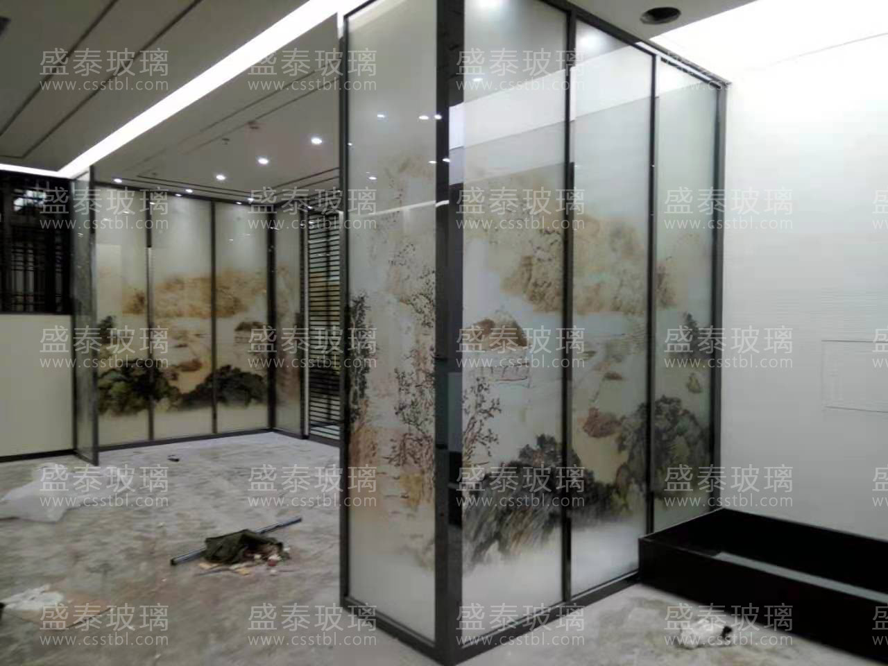 2、客廳背景墻水墨山水畫夾絲夾膠玻璃用于客廳的裝修,不但能極好的彰顯出主人的個人素養(yǎng),同時也是對家居環(huán)境氛圍的最佳營造??蛷d藝術玻璃電視背景墻能在大空間里起到一個特別裝飾的作用!