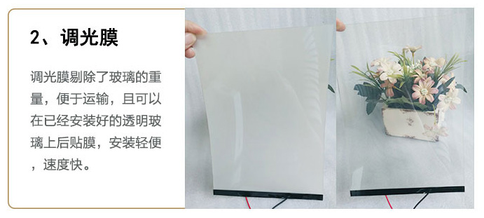 工作原理當(dāng)調(diào)光玻璃關(guān)閉電源時(shí),電控調(diào)光玻璃里面的液晶分子會(huì)呈現(xiàn)不規(guī)則的散布狀態(tài),此時(shí)電控玻璃呈現(xiàn)透光而不透明的外觀(guān)狀態(tài);當(dāng)給調(diào)光玻璃通電后,里面的液晶分子呈現(xiàn)整齊排列,光線(xiàn)可以自由穿透,此時(shí)調(diào)光玻璃瞬間呈現(xiàn)透明狀態(tài)。